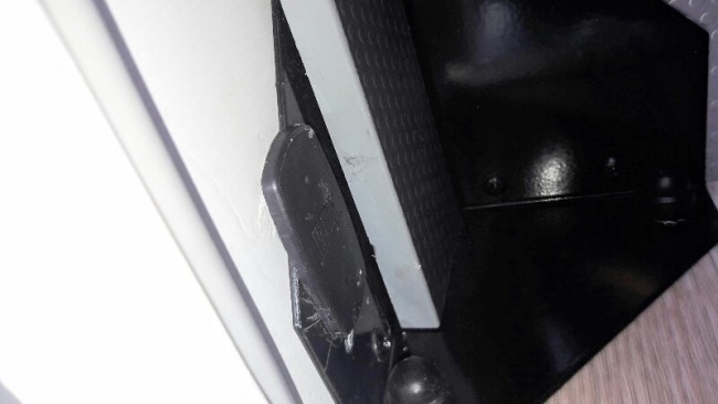Tył mam skośnie bo akurat by wyszło na drzwiach garażowych... Samo mocowanie też przykręciłęm po skosie i jest ok. |
