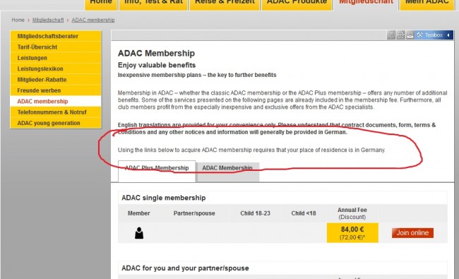 Using the links below to acquire ADAC membership requires that your place of residence is in Germany.