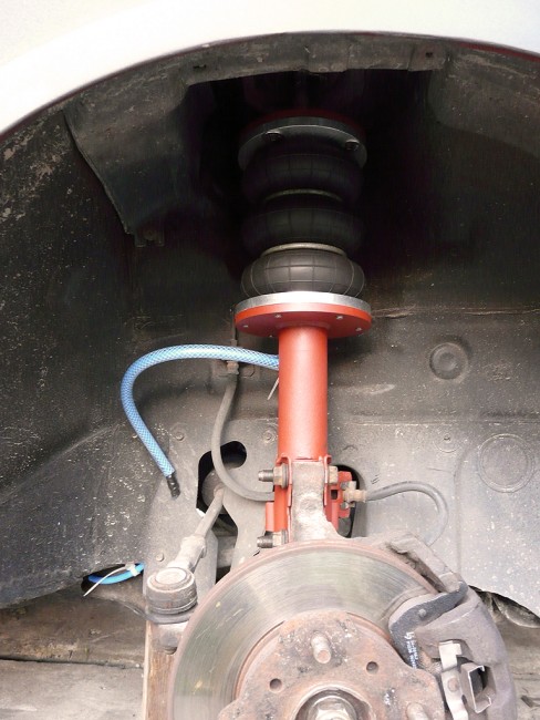 Poniżej zdjęcia jak ktoś zmotal zawieszenie air ride. Nie piszę Bronek, że masz takie coś zrobić ale jest to możliwe byle dopasować poduszkę z amorkiem (czyli miech pneumatyczny). I na miasto!