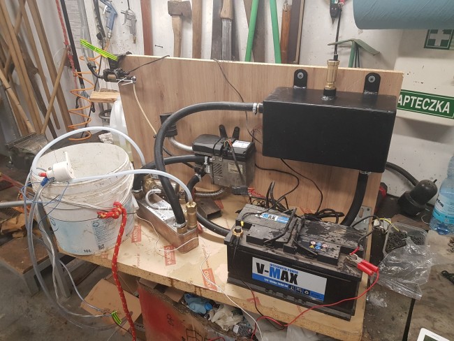 | TU pod koniec masz krótki opis i zdjęcie wymiennika. Włączyłem się w oryginalną instalację webasto (eberspacher) samochodu, równolegle do nagrzewnicy przestrzeni mieszkalnej. Przewody takie same jak oryginał doszły tylko trójniki zawór i dodatkowa pompka. I oczywiście kilka przekaźników do sterowania. Robota prosta na kilka godzinek pracy. |