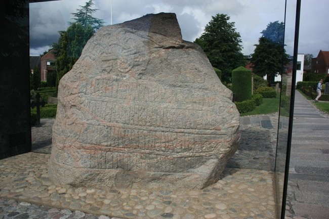 Jelling to miasteczko w środkowej Jutlandii. Jest to najważniejsze historycznie miejsce w Danii. Znajduje się tu niewielki romański kościół w pobliżu którego znajduje się stary cmentarz . Kościółek usytuowanym jest między dwoma ok. 10-metrowymi kurhanami. Kurhany są miejscem spoczynku władców Danii epoki Wikingów, a świadectwem ich czasów są zachowane tu kamienie runiczne. W Jelling znajduje się również muzeum Wikingów.