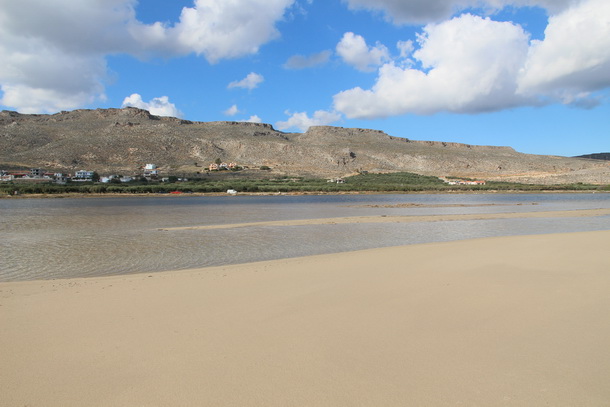 Dojezdzamy do Elafonisi, ktore latem jest strasznie przepelnione. Musicie wyobrazic sobie, ze na tej przestrzeni stawianych jest 1.500 parasoli slonecznych a i osob kapiacych sie tez zapewne nie brakuje. Trudno to sobie wyobrazic, gdy ma sie morze jak i lagune tylko dla siebie zima ale tak tu jest! Na lagunie wyznaczona jest czesc do kapania i czesc dla kitowcow.