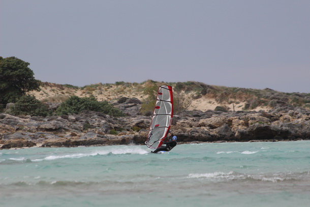 Z Elafonisi pojedziemy do Falsarny mijajac po drodze miejsca w ktorych pomimo braku szerokiej plazy tez moznaby bylo polpywac przy dogodnych kierunkach wiatru i wyszukaniu dogodnego zejscia do windsurfingu.