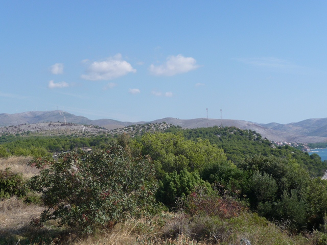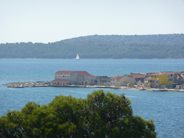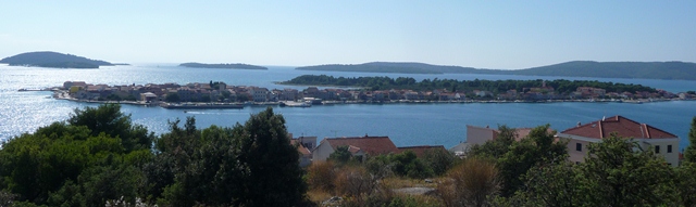Mijamy Primosten – z góry wygląda bardzo obiecująco, potem na mapie zauważam niewielką wyspę i chodź gps upiera się, że można na nią wjechać mostem – niestety nie można. Przejeżdżamy nad kanałem, za którym znajduje się punkt widokowy – choć tyle naszego.