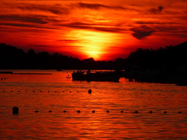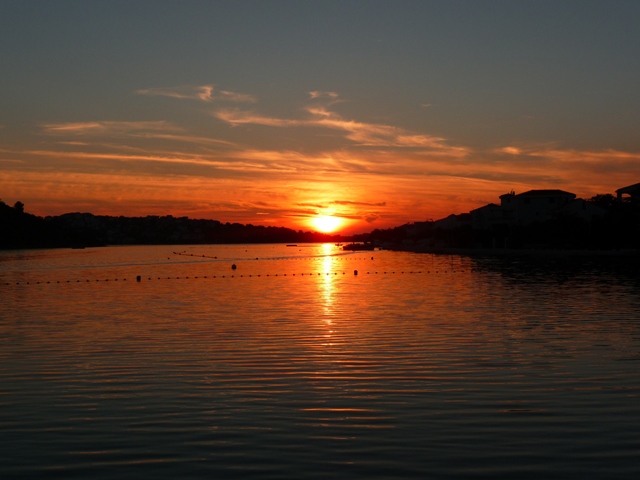 Jako, że do Stupid Celine nam już niedaleko postanawiamy wstępnie spędzić trochę czasu na plaży w tej niewielkiej cichej miejscowości. Zjeżdżamy z głównej drogi do „portu” i „plaży” – trochę wąsko i nisko, ale da się przejechać. Wokół cisza i spokój jedynie grupka kilku młodych osób – no tak Polacy. Chyba można postawić już znak równości - Chorwacja =Polacy. Chwilę rozmawiamy, a później delektujemy się ciepłym morzem – jest tu wąska zatoka, która zdążyła się już nagrzać. Do wody można wejść bez butów. Miejsca do przystanięcia wzdłuż drogi co prawda niewiele, ale jest ona tak często uczęszczana, że przez godzinę minął nas jeden samochód z łódką. Postanawiamy zostać tu na noc – przy końcu zatoki jakieś 150m dalej jest przydomowy camping. Wjeżdżamy – właścicielka nas poznaje/niepoznaje – ale bacznie się nam przygląda. Dopiero gdy uświadamiamy jej, że rok temu byliśmy tu T4, i że zdążyli zaangażować pół wioski, żeby użyczyć nam prądu do akumulatora jej twarz się rozjaśnia – no tak poznaje Jest to niewielki camp na góra 8 camperów – no może 10 ale takich bardziej zaprzyjaźnionych Za nasz zestaw 100 kun w sezonie byłoby 30 więcej. Stoimy pod oliwkami przed nami zatoka . Wieczorem spacer na plażę i ehhh ten zachód...