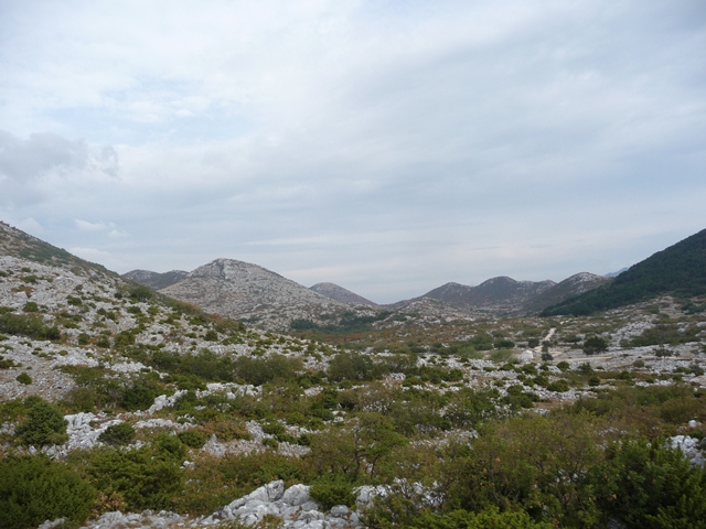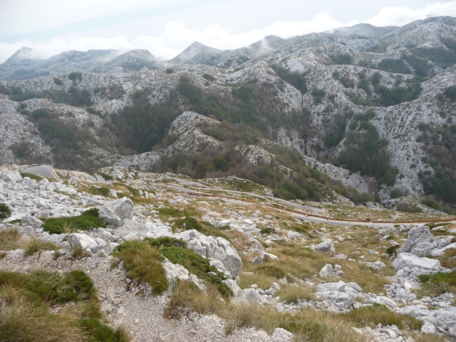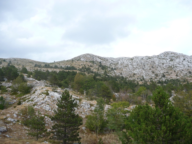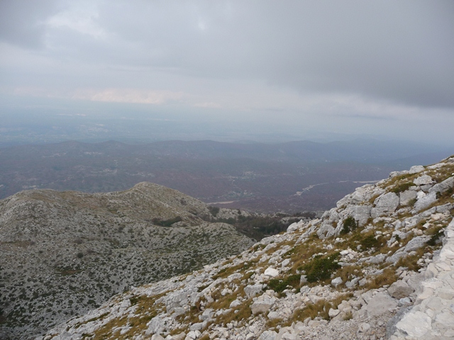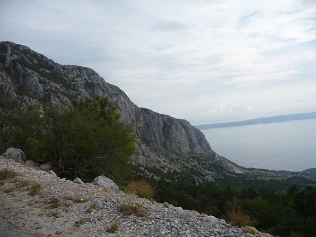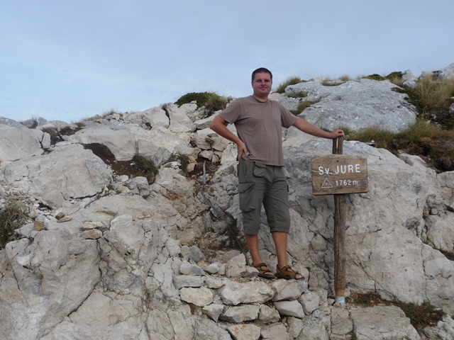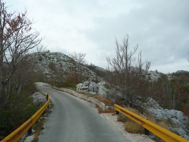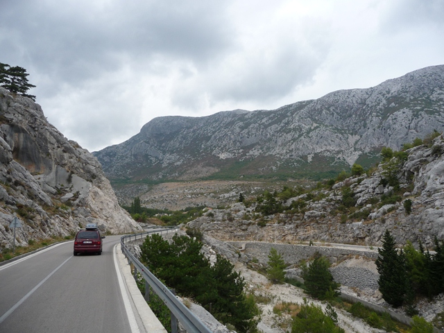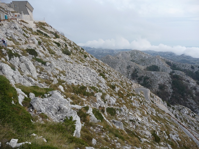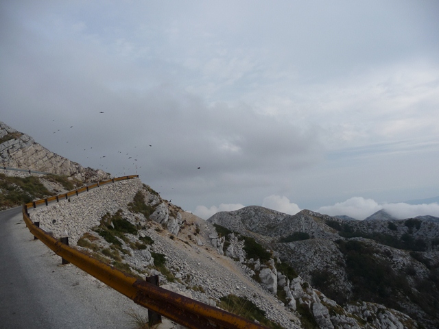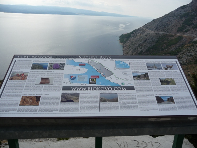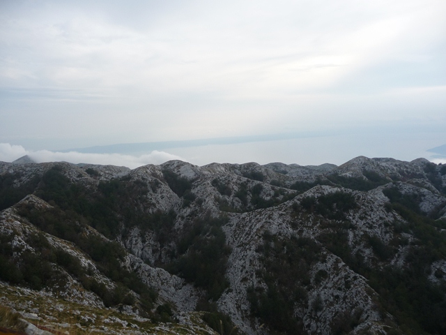 Mamy w końcu możliwość zakosztowania gór z bliska. Po minięciu 1500m pojawiają się przy drodze tyczki z łańcuchami – innych zabezpieczeń brak. W końcu jesteśmy 1750 z hakiem zdobyte to najwyżej położona trasa w Chorwacji. Jest tu niewielki parking na 20 osobówek. Widoki mniam 360 stopni – przy lepszej widoczności miodzio. Na górze jest przekaźnik, a idąc ścieżką dociera się po minucie, dwóch do niewielkiej kapliczki. Na górze oczywiście też tylko prawie same polskie rejestracje. Piękne miejsce szkoda tylko, że nie wolno tu zostać na noc bo ani chwili byśmy się nie zawahali.
