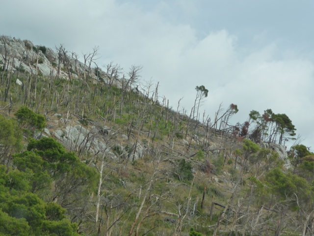 Dalej już bez przeszkód docieramy do budki strażnika na dole. Czy jechać tędy dużym camperem - jeśli wpuszczą - ciężko powiedzieć, bo chwilami naprawdę wąsko. Jak wracaliśmy to na odcinku prostej stała osobówka od strony zbocza i chwilami zastanawialiśmy się czy się przeciśniemy naszym 2m szerokości autem przy skałach. Jednak na scuterową, rowerową lub pieszą wycieczkę jest to jak najbardziej miejsce do polecenia góry, morze i okoliczne wyspy przy dobrej pogodzie jak na dłoni