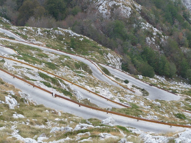 Im wyżej tym widoki stają się piękniejsze – dobrze, że zostawiliśmy w dole morze – mówcie co chcecie, ale nie ma nic piękniejszego nad góry (tak wiem mam hopla na ich punkcie ) Nawet motorki grzecznie trzymały się za nami – grzecznie, bo nie miały możliwości wyprzedzenia – za wąsko. Dużo samochodów nas nie mijało – może z 10 z czego 8 miało polskie rejestracje – dlaczego mnie to nie dziwi Jeden był uparty, ale wzięliśmy go na przetrzymanie nie miał wyjścia musiał sporo cofnąć, bo akurat nie było możliwości szybkiego zjechania. Powyżej 1400m jedzie się już lepiej - widać na dalszą odległość, ale miny kierowców osobówek na nasz widok poprzyklejanych do skał – bezcenne. Ponieważ czytaliśmy, że wąsko dlatego pytaliśmy strażnika czy możemy tak szerokim samochodem wjechać – nie miał obiekcji, ale faktycznie nie wyobrażam sobie minięcia tutaj dwóch camperów – fizycznie się nie zmieszczą nawet na wielu mijankach.