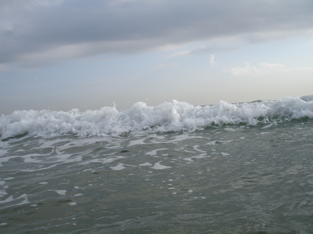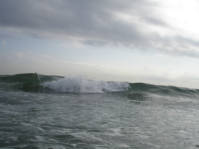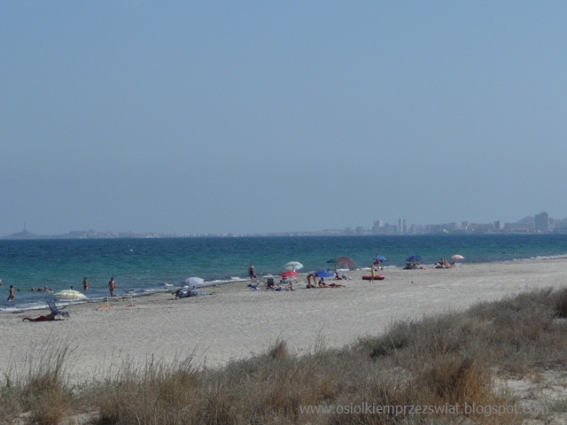 Jak postanowiliśmy tak i zrobiliśmy idziemy na plażę –zajmie nam to jedynie chwilkę jak twierdzili w recepcji campingu. Po prawie 30 minutach już jesteśmy na plaży – tak tak słoneczko prażyło dlatego zajęło nam to więcej niż chwilkę. No ale nic w końcu jesteśmy – chcemy słońca i wody. Tyle, że słońce się chowa, a i z pływania też raczej nici bo fala jest potężna. Niby w okolicy jest sporo wysokich hoteli, ale plaża pusta – może to ta pogoda kto wie. Grunt, że praktycznie cała plaża dla nas a i z wody można robić ciekawe zdjęcia.