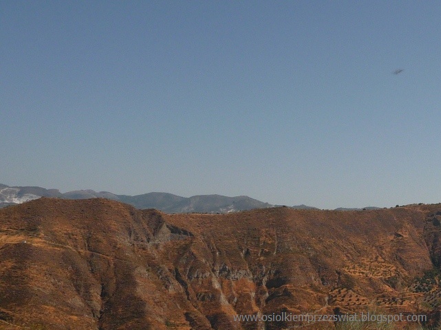Jednak skwar zaczyna mocno dokuczać – oddalenie od morza daje się we znaki. Postanawiamy zatem trochę się ochłodzić i udać w pobliskie Góry – Sierra Nevada. Dla nas był to strzał w dziesiątkę i sposób na spędzenie dnia. Góry te leża zaledwie 20-30km od Granady a dojazd do nich – mimo, że wjeżdża się na 2650m. n.p.m. nie jest taki straszny. Roztaczające się za oknem samochodu widoki i panoramy sprawiają, że czujemy się jak w niebie – wydaje się, że miejscami można go wręcz dotknąć.