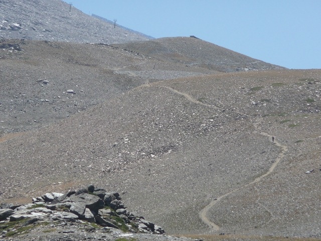 My jedziemy dalej wspinając się do miejscowości Sol (2250), która o tej porze roku jest raczej opustoszała, a ożywa chyba głównie zimą. Dalsza wspinaczka doprowadza nad do parkingu (2650) stąd nie dość, że cudne panoramy to jeszcze można wejść na ok 3300m.n.p.m. Zaczynamy więc wspinaczkę w kierunku szczytu. Wejście nie przysparza większych trudności poza kwestią wysokości. Dla leniwych jest możliwość wejścia drogą asfaltową, a dla naprawdę leniwym – wjazdu busikiem – tylko trzeba było o tym wiedzieć. Na mapie jest droga dlatego wydawało się nam, że uda się przejechać na druga stronę pasma górskiego. Niestety droga jest, ale jest szlaban – można albo wybrać się busem, który podwozi pod szczyt lub ewentualnie rowerem. My jednak idziemy na spacer po okolicy.