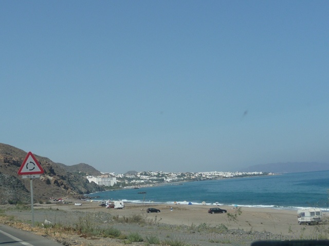 Ze stacji zwijamy się wraz z poranną szarówka – trzeba poszukać ciekawszego miejsca na śniadanie. Jedziemy bocznymi drogami do Granady. Słońce ledwo co wynurza się zza gór a temperatura jakby nie hiszpańska – przy śniadaniu o 8 rano towarzyszyło nam 13 stopni – toż to normalnie Syberia w porównaniu do tego skwaru, który nie dawał nam w nocy spać.