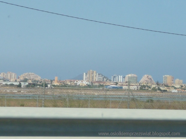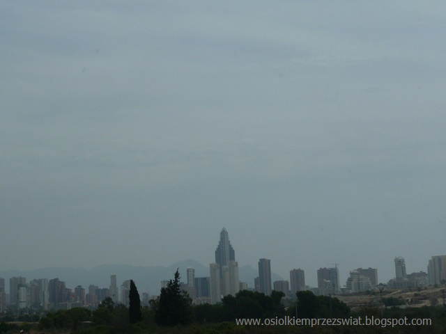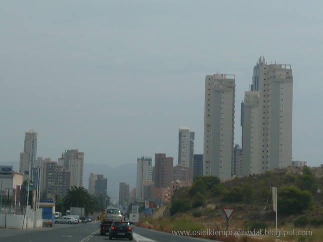 Benidorm – mini Manhattan, gdzie znajduje się bardzo dużo wysokich hoteli – między innymi najwyższy w Europie, położony jest przy dwóch zatoczkach złotego piasku – ale chyba dziś go nie zobaczymy – otoczenie w tym świetle jest szare i ponure.