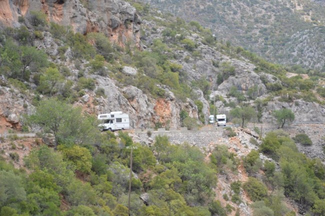 Peloponez – delikatnie się ucywilizował – kierunkowskazy, opisane zabytki natomiast reszta wydaje się bez zmian. Nadal oferuje dzikie plaże, kręte drogi, malownicze widoki i spokój od zgiełku miast. Czasami nawigacja wariowała twierdząc, że damy radę przecisnąć się pod 2m mostem, albo zmieścić w 1,5m szerokości uliczkę, gdzie zamiast asfaltu są schody, ale generalnie było ok i budki turlały się swoim tempem przed siebie.
