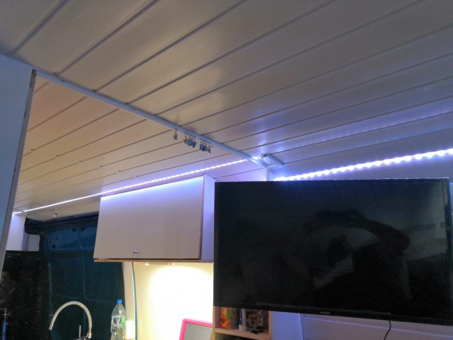 Przyszła kolej na sufit z tym najwięcej pracy żeby wszystko było równo. Przy okazji zrobiłem ścianę. Wpadła lampka ledowa na ścianę.