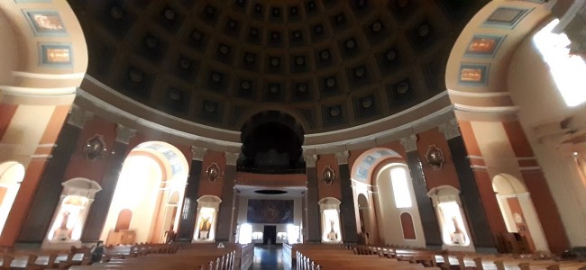 Niecały kilometr od fontanny „Potop”, ale już poza dzielnicą muzyczną stoi monumentalna budowla przypominająca rzymski panteon. To bazylika będąca najwyższym 63-metrowym budynkiem w mieście. Wystrój wnętrza to dzieło życia prof. Wiktora Zina, a witraże zostały zaprojektowane przez jego żonę.