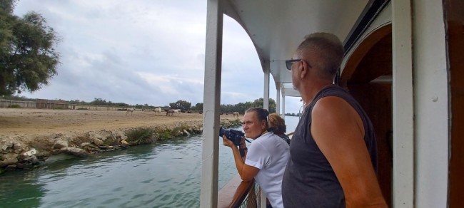 Czas jednak spotkać się z innymi słynnymi mieszkańcami Camargue, więc z parku jedziemy do portu Tiki III, skąd odpływamy w 1,5 godzinny rejs statkiem po jednej z odnóg Rodanu. W kilku miejscach z pokładu statku podziwiamy pasące się na brzegu białe konie i czarne byki. Nie jest to wprawdzie bliskie spotkanie, ale zwłaszcza w przypadku byków może to i lepiej.