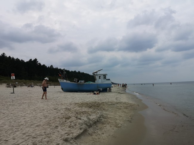 02.09. Pojechaliśmy na Mierzeje, na przekopie zostawiliśmy kampera i na rowerach pojechaliśmy na rybkę do Kątów Rybackich. Tam podczas przejazdu natrafiliśmy na parking leśny i przemieściliśmy się na noc.