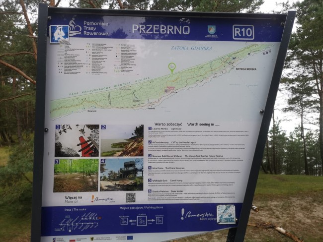 Wczoraj z przekopu pojechaliśmy w stronę Krynicy Morskiej. Całą trasa rowerowa R10 przez mierzeję jest dobrze przygotowana, prowadzi przez lasy, często z widokiem morza. Nam się bardzo podobała i polecam.