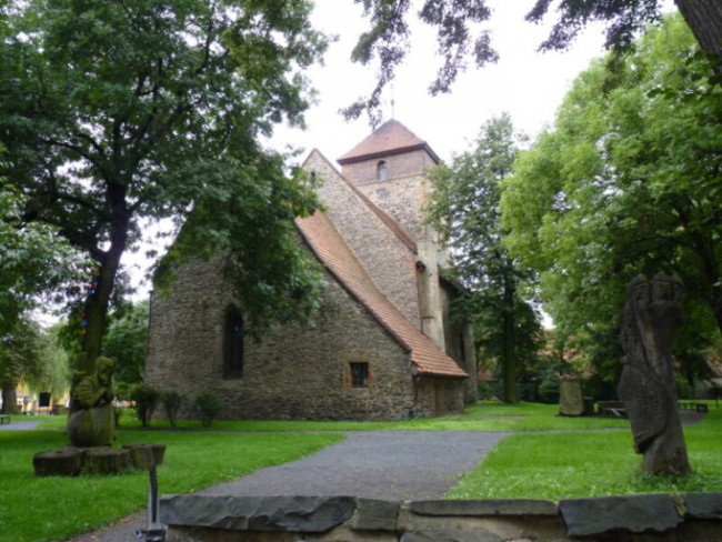 Według legendy w miejscu, gdzie znaleziono bezgłowe ciało Henryka II poległego w bitwie w 1241, zwanego później Pobożnym, i pogrzebano jego rycerzy wystawiono kaplicę a później gotycki kościółek pod wezwaniem św. Trójcy i Najświętszej Marii Panny (wniesiony na przełomie XIII i XIV w.)
