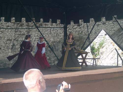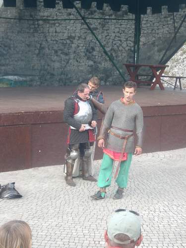 Będąc tam obecnie trafiliśmy na pokazy strojów i tańców średniowiecznych, oraz demonstrację zbroi ryceskich z różnych epok, połączonych z pokazem walk.