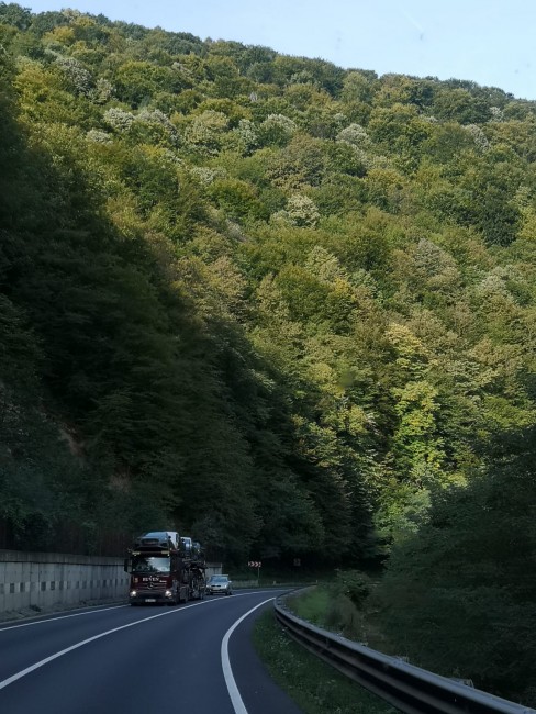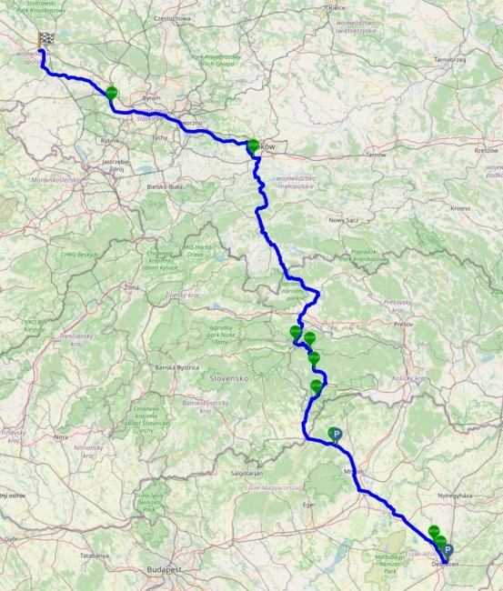09.10. Na naszej trasie w Rumunii, poza krótkim odcinkiem autostrady, jedzie się drogami pełnymi tirow i lokalnego ruchu, jedzie się powoli i jest to dość męczące. Na Węgry wjechaliśmy dość szybko, chociaż celnik wszędzie zaglądał. Zmęczeni zatrzymaliśmy się w Debreczynie 47.545816 21.640699. Temp 10 st, dla nas zimno.
