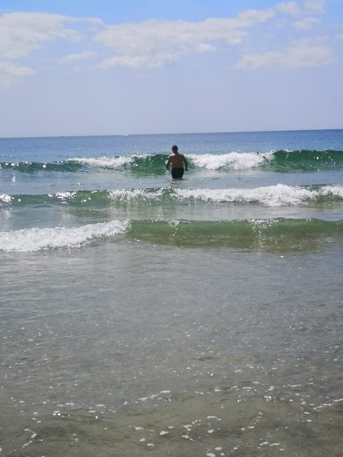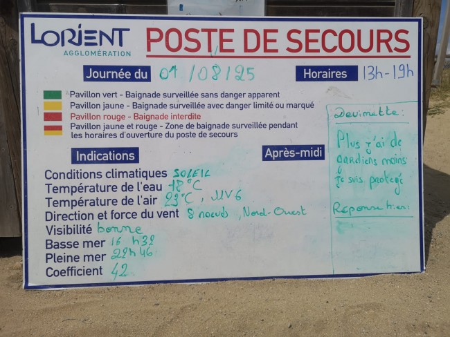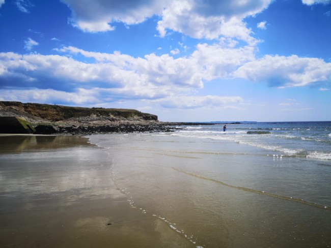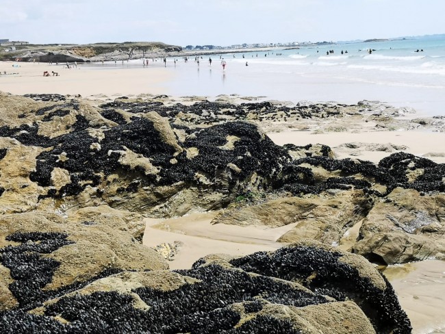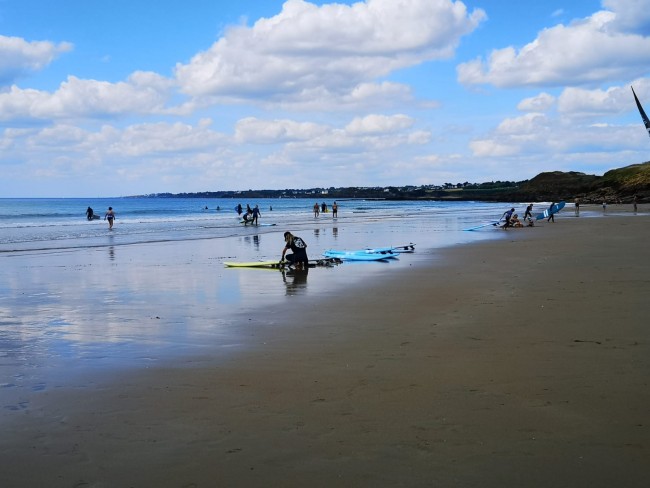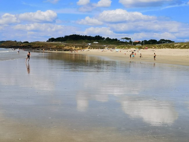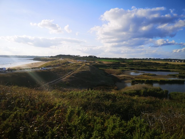 Cały dzień dużo słońca i choć temp. wody jak w Bałtyku, to odważyłem się zanurzyć. Stoimy na parkingu z wyznaczonym miejscami dla kamperów, przy Plage Loch 47.756599 - 3.51521