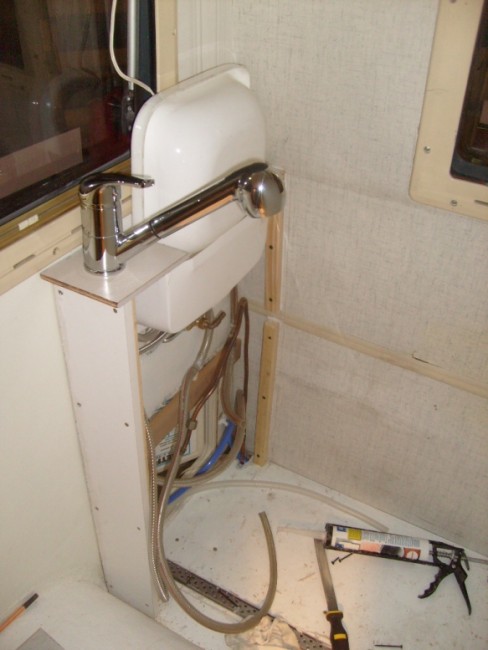 Po przeróbce w moim kamperku ,zastosowałem normalną baterię prysznicową z wysuwaną słuchawką .