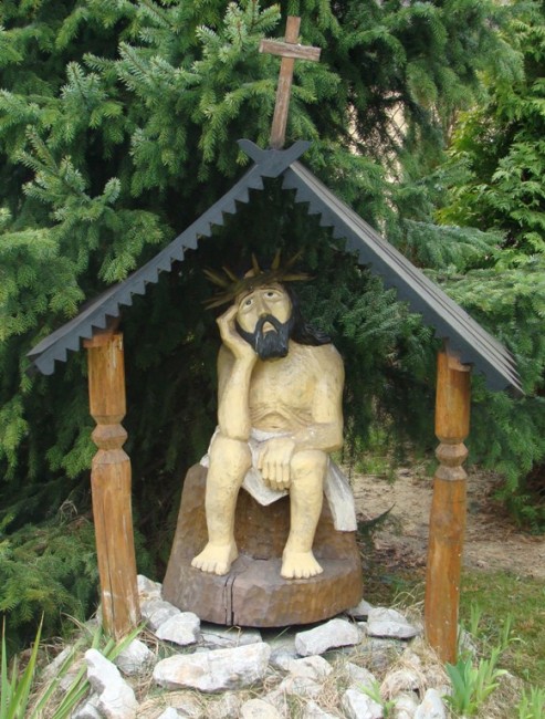 Spoglądamy na Jezusa zmartwionego i chłopa przyglądającego się nam przez płot i .........