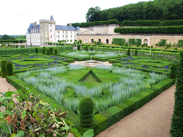 Wracam więc na szlak--ruszamy pospacerować wokół zamku w Langeais by po chwili wpaść w ręce natchnionego ogrodnika z Vilandry .To jedyne znane mi miejsce gdzie rośliny ozdobne i użytkowe wspólnie tworzą dekorację.Obok różnych odmian ozdobnych roślin, ziół,małych drzewek owocowych , krzewów różanych jest tu pełno warzyw!