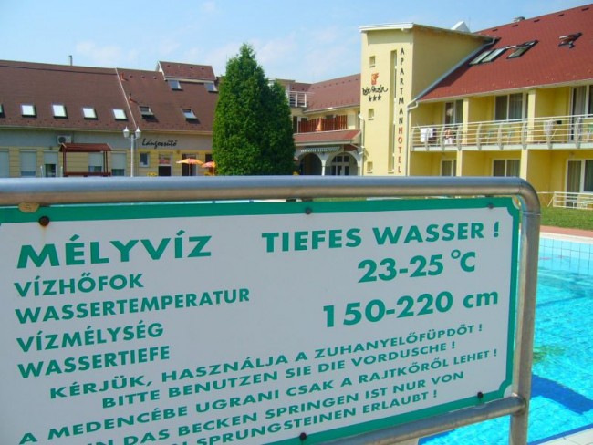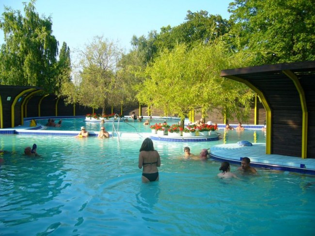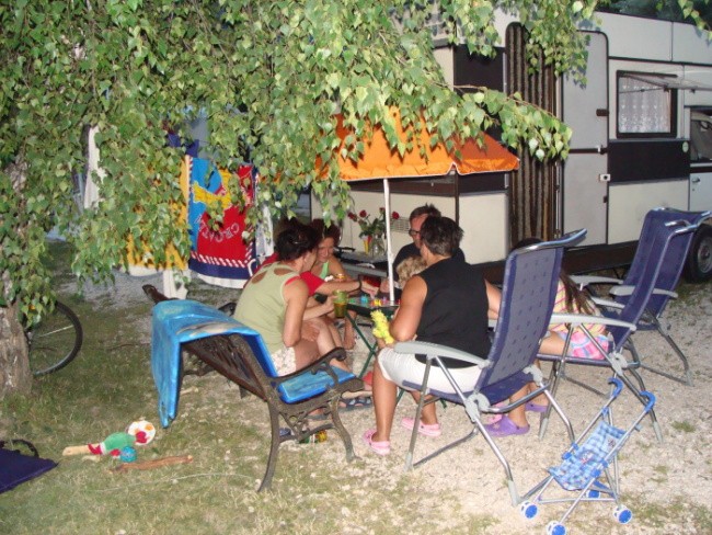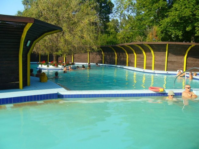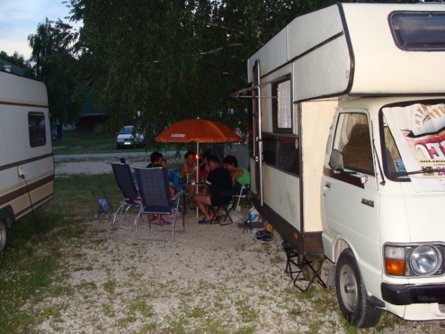 Kemping z termami oraz basenami, dla dorosłych i dzieci, recepcja przyjazna, obsługa również, WiFi, knajpka z piwkiem i jedzonkiem na terenie, miasteczko "puste" mam na myśli bardzo małą ilość osób na ulicach.....