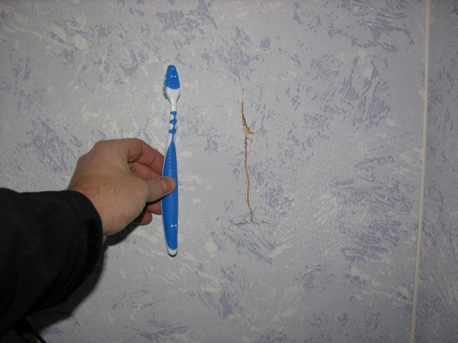 dziura jest wielkości pięści, wypchnęło też od wewnętrznej strony troszkę ścianki w łazience.