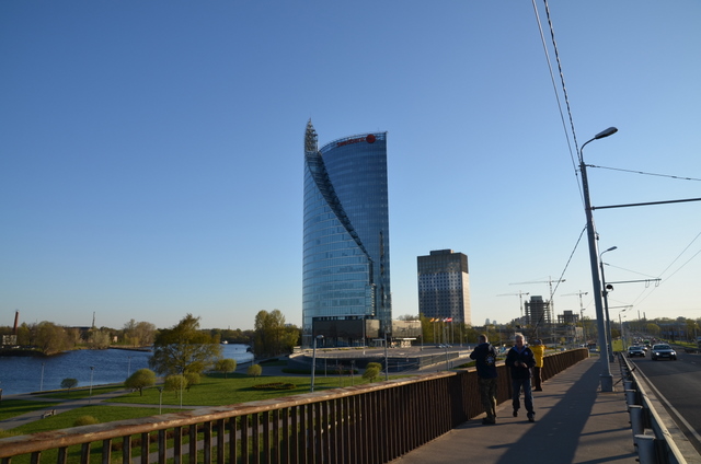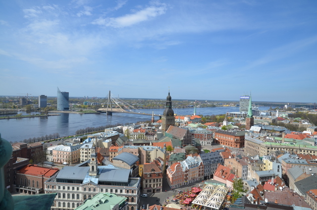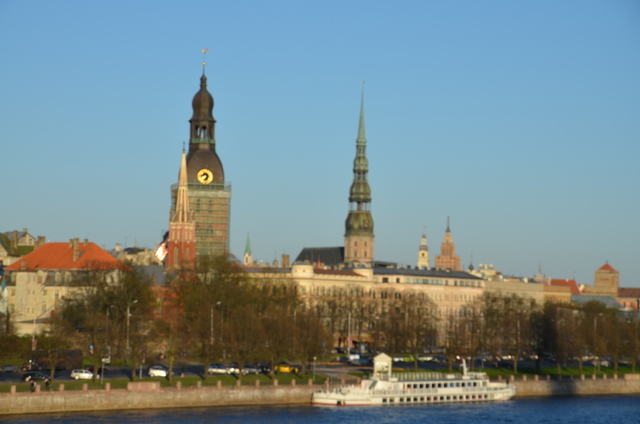 Po zajęciu stanowisk, spacerkiem udaliśmy się na Stare Miasto. Mostem wiszącym przerzuconym nad Dźwiną, z rozpościerającym się przed naszymi oczami