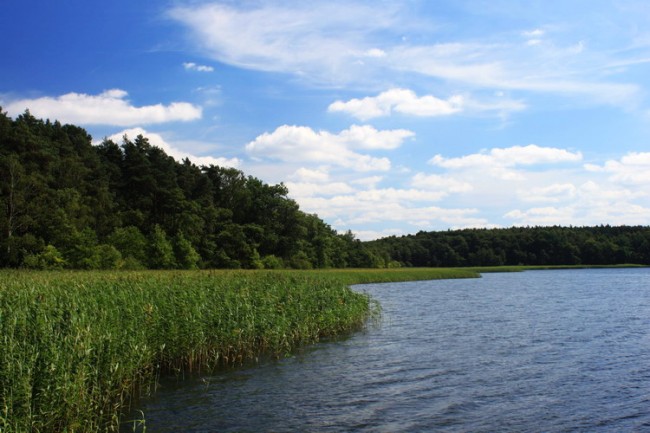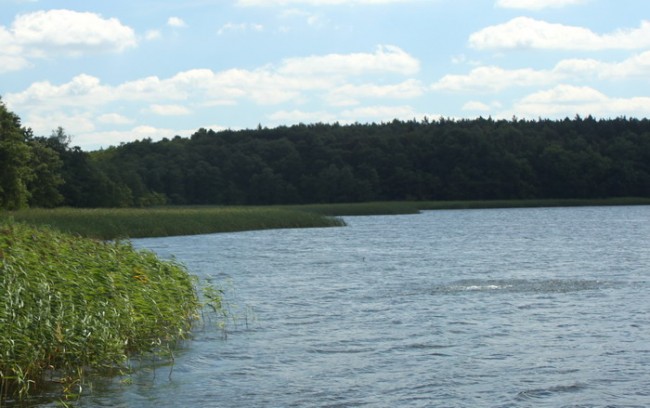 - Wie pan, właśnie. Widzi pan ten trzcinowy cypelek po prawej? Gdy opływałem go na głębokości około sześciu metrów, to zauważyłem na dnie dużo kukurydzy. Ktoś tam musi nęcić i łowić. Widziałem w tym miejscu stado ładnych, gruntowych płoci.