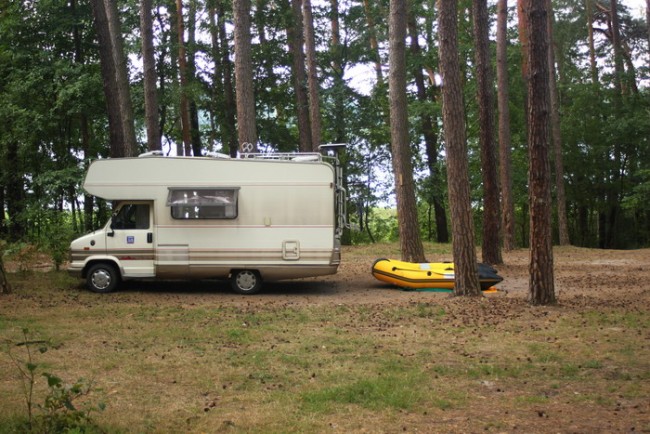 Po przejechaniu kilkudziesięciu metrów kątem oka zauważyłem tuż pod kamperem, przy samych drzewach kajak a w nim dziewczynkę czytającą książkę. Dopiero po dojechaniu do pola biwakowego dowiedziałem się kim była i co tam naprawdę robiła.