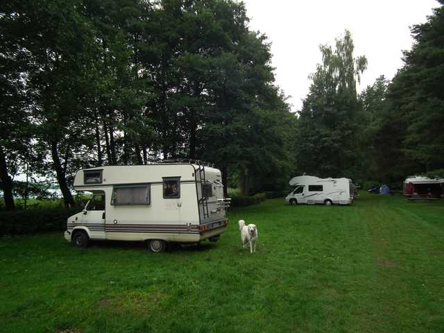 Po przejechaniu Augustowa uwagę moją zwróciły reklamy pól namiotowych Dwory i Ostry Róg położonych na północnym brzegu Jeziora Białego. Dziurawa droga gruntowa ciągnąca się w nieskończoność napawała mnie obawami. Gwałtowny skręt do Dworów zniechęcił i po jeszcze paruset metrach dojechaliśmy do Ostrego Rogu. Pole namiotowe bardzo sympatyczne, choć nie oferujące luksusów – sławojki lub ubikacja z prysznicem w godzinach pracy znajdującej się po sąsiedzku „klubo-kawiarni” . Biorąc jednakże pod uwagę położenie, cenę (27/noc) i możliwość uzupełnienia wody i prądu (prąd chyba za dodatkową opłatą) jest to miejsce godne polecenia.