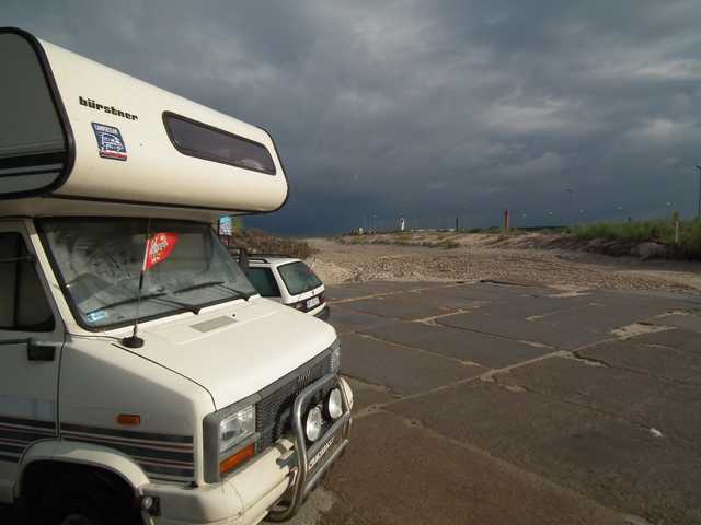 Z Osetnika (Stilo) drogą przez Nowęcin osiągnęliśmy Łebę, gdzie trochę klucząc dojechaliśmy do parkingu przy marinie jachtowej. Jako, że wieczór za pasem, parking pusty i bez konieczności opłat. W trakcie spaceru z Berą odkryłem, że za mariną droga prowadzi do jeszcze lepszej miejscówki zaraz przy zachodnim falochronie. Prawie po ciemku już z pełnym zagospodarowaniem bardzo ostrożnie przenieśliśmy się w tamto miejsce