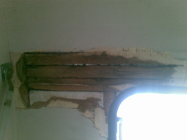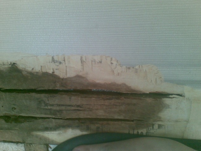 Kolego na pierwszy rzut oka widać że ta woda to leje sie dobre parę lat.Teraz gdzie ona sie traci prawdopodobnie cieknie po listwach na boki i gdzieś na podłogę,mnie spotkał podobny problem ale ogrom zniszczeń z tak małego zacieku był bardzo bardzo duży włacznie z listwami bocznymi.Najważniejsze to wyśledzić dokąd ściekała woda.Mnie z tylnej drabinki uszkodziło tylny i boczny narożnik ale za to podłogę na całym tyle.