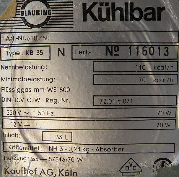 Lodówka niemiecka, stara, załączam zdjęcie tabliczki znamionowej (taka naklejka z tyłu).