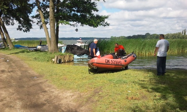 Trafiliśmy do Giżycka gdzie był Janusz o nicku ninik59 ,pogoda super ,chcieliśmy popływać i połowić drapieżnika, ale niestety silnik odmówił posłuszeństwa ,trochę pokręciłem cosik przykręciłem i silniczek odpalił ,normalnie rakieta 25 koników ,z pomostu brały płotki była super zabawa :-P