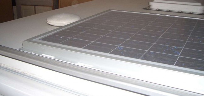 Tak jak pisze papamila kątowniki aluminiowe są dobrym rozwiazaniem. Ja proponuję na takowych (np 50*50) położyć kawałki rury kwadratowej (np20*20) na których będzie położony panel. Kątowniki mocujemy na sikaflex lub podobny produkt a aluminium skręcamy z sobą samowiertami najlepiej z kwasówki. Prześwit pod panelem konieczny ze względu na charakterystykę pracy ogniw fotowoltaicznych. Elementy mocujące mogą być na dwóch krawędziach (nie muszą być na czterech). Do przejścia kablowego wystarczy wykorzystać puszkę hermetyczną nawierzchnią stosowaną w instalajach elektrycznych.