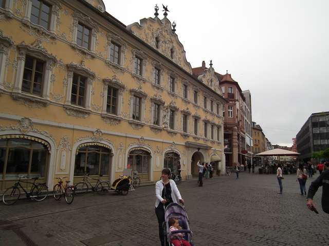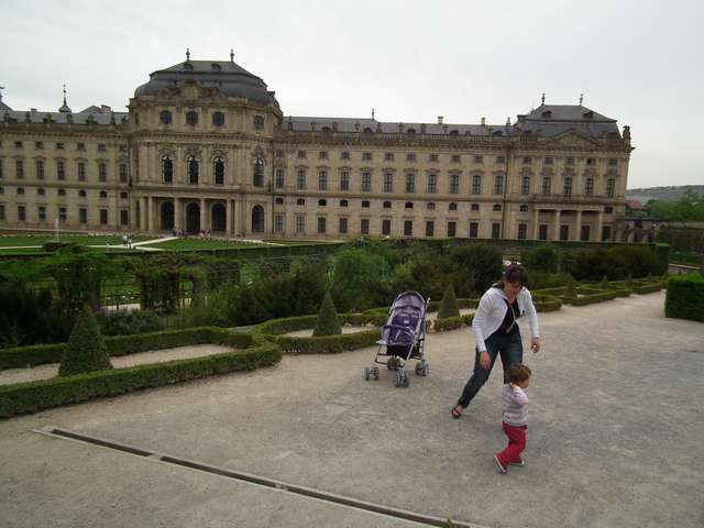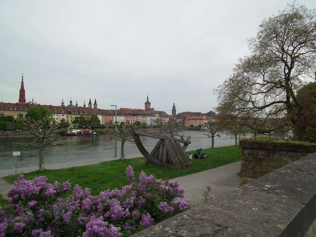 Po wyruszeniu z lasu przebyliśmy około 60 km i zatrzymaliśmy się na pierwszym punkcie Szlaku Romantycznego - na parkingu pod Friedenbrucke w Wurzburgu. Parking ten znajduje się dokładnie vis a vis Stellplatzu i w weekend bardziej opłaca się stanie na parkingu (na parkingu 0,50 E za godzinę; na stellplatzu 1 E). Miasto, jak na pierwszy punkt tejże ponoć malowniczej trasy, zawiodło nasze oczekiwania. Nie dość, że na niemieckie warunki dość obskurne to dzięki jego wielkości - poszczególne ciekawsze miejsca oddzielone od siebie mało ciekawymi okolicami. Po 2,5 godzinnym zwiedzaniu miasta i twierdzy ruszyliśmy w dalsza trasę.