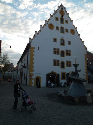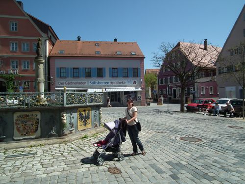 Z racji zbliżającego się dna w baku zatankowaliśmy (tylko 20l - ceny przyautostradowe i świąteczne na dodatek), a później przy kawie skonsumowaliśmy rothenburskie kule śniegowe. Kolejny postój z konkretnym zwiedzaniem wypadł w Feuchtwangen - małym miasteczku, w którym nie dane nam było zwiedzić głównej atrakcji - klasztornego dziedzińca.