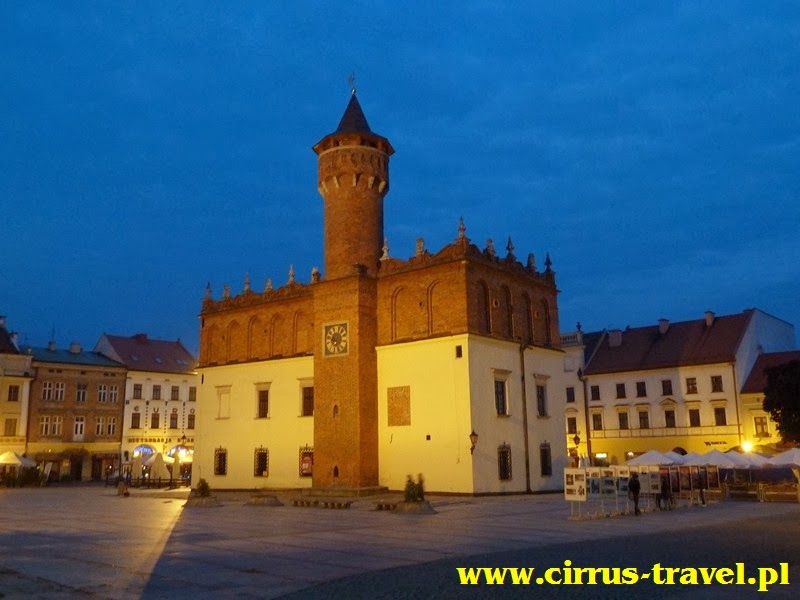 Tarnowski ratusz i renesansowe kamieniczki przy rynku.