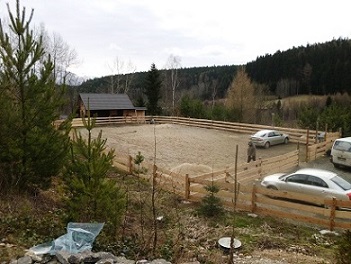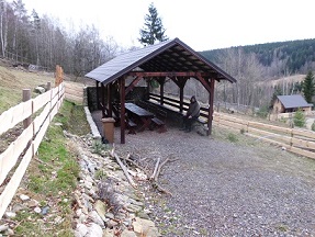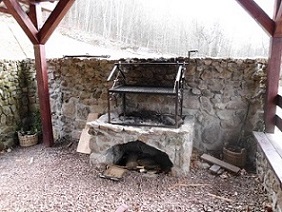 wyżej jest parking, nad tym wiata ze stołami i miejscem na grilla.