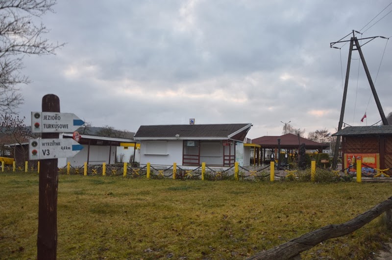Wracamy ze 3km by dotrzeć do Wapienicy nad Turkusowe Jezioro. Jego dno leży ponad 18 m niżej niż nasze morze. Zostawiamy auto na parkingu (możliwy nocleg) (53.879003,14.440593) i w minutę jesteśmy nad jeziorem. Okolica fajnie zagospodarowana, ławki, stoliki, jest też knajpka i plac zabaw dla dzieci. Byliśmy już prawie przed zmierzchem dlatego nie wybraliśmy się ścieżką nad Wzgórze Zielonka, ani do wyrzutni rakiet choć daleko nie było.