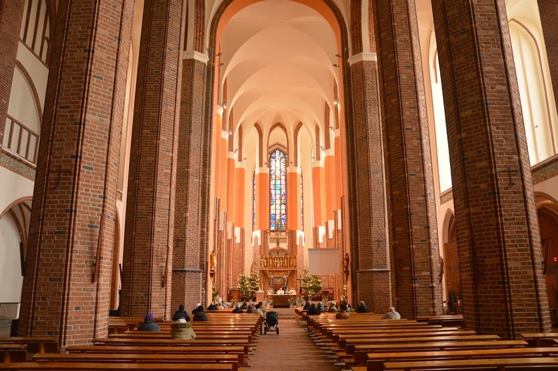 Spacer zaczynamy od Katedry, po Licheniu najwyższy kościół w Polsce. Jest wieża widokowa, ale po 11 listopada trzeba się wcześniej umawiać.