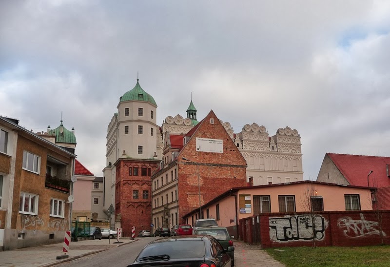 Nieopodal leży biały zamek Książąt Pomorskich, cały w świątecznej krasie. Trochę taki nietypowy zarówno kształtem jak i dwoma dziedzińcami.