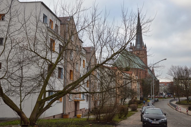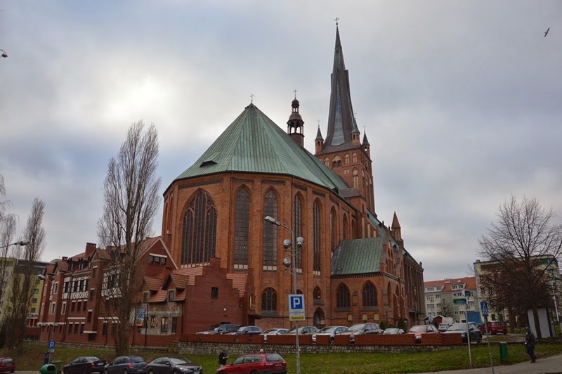 Spacer zaczynamy od Katedry, po Licheniu najwyższy kościół w Polsce. Jest wieża widokowa, ale po 11 listopada trzeba się wcześniej umawiać.