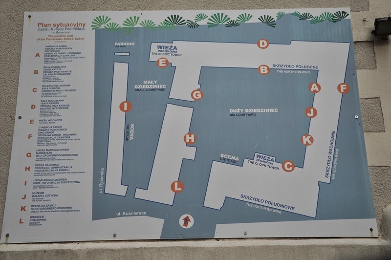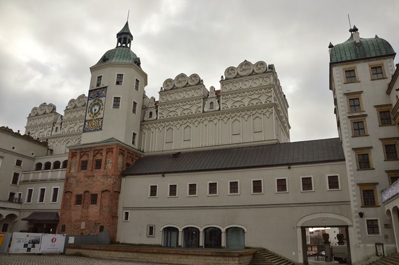 Nieopodal leży biały zamek Książąt Pomorskich, cały w świątecznej krasie. Trochę taki nietypowy zarówno kształtem jak i dwoma dziedzińcami.